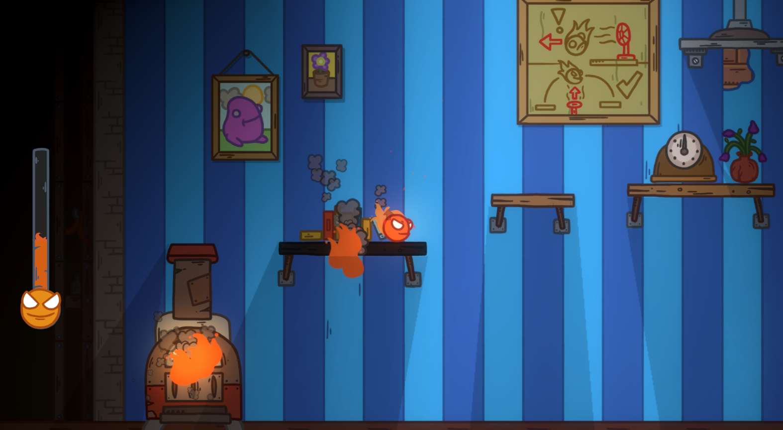 This game is a Puzzle Platformer Game, where you play as a small flame that needs to make his way to the couch and set it on fire before burning out.